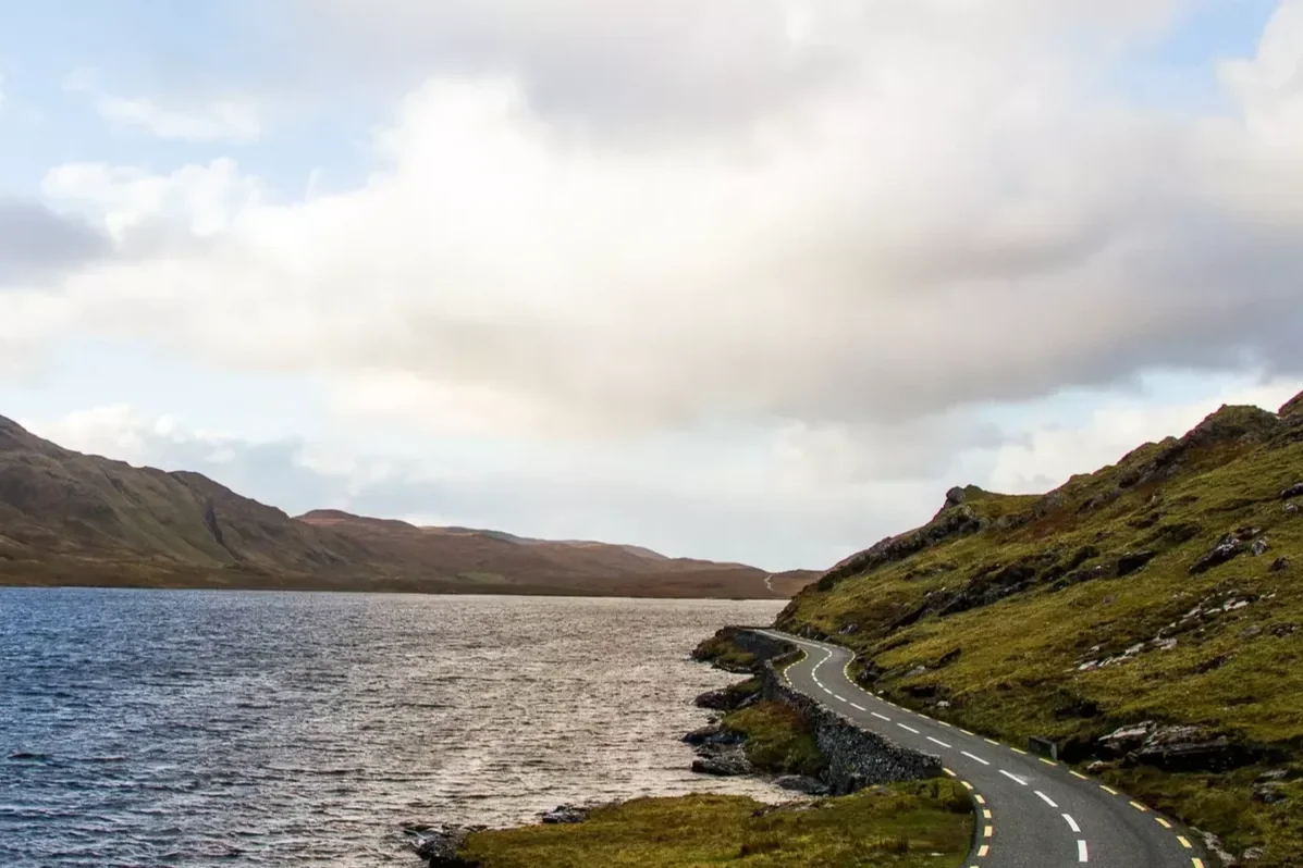 Ride through the peaceful landscapes of Delphi and Doolough Valleys, where still lakes, wide skies, open boglands, and empty roads capture the true spirit of Connemara.